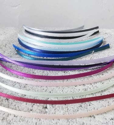 Chaque bijou est créé à la main avec du ruban dans mon atelier dans le sud de la France. Je tisse le ruban sur des plaques découpées au laser.